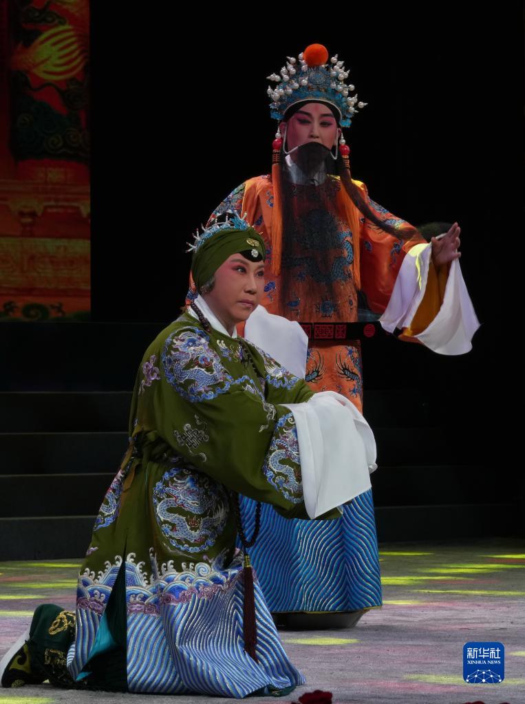 4月26日,保定王貫英老調藝術(shù)研究院的演員在開(kāi)幕式演出現場(chǎng)表演老調《潘楊訟》。