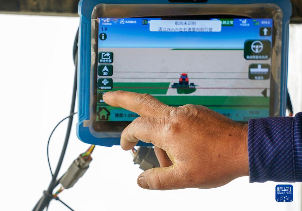 新疆尉犁縣巴西買(mǎi)里村,爾肯·熱衣木在操作北斗導航系統(4月21日攝)。