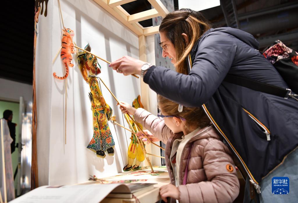 4月25日,在意大利佛羅倫薩舉辦的國際手工藝展覽會(huì )上,參觀(guān)者體驗中國皮影文化。