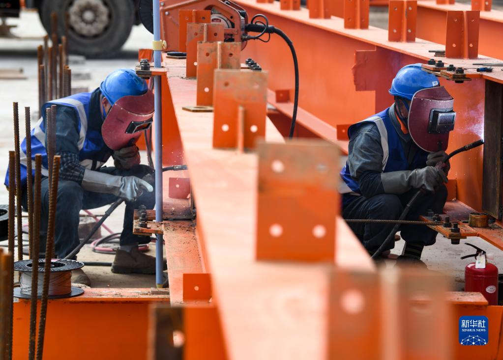 4月27日,在中建安裝集團有限公司位于四川遂寧市射洪市的廠(chǎng)房增產(chǎn)擴能項目建設現場(chǎng),參建者參加鋼結構柱焊接比賽。