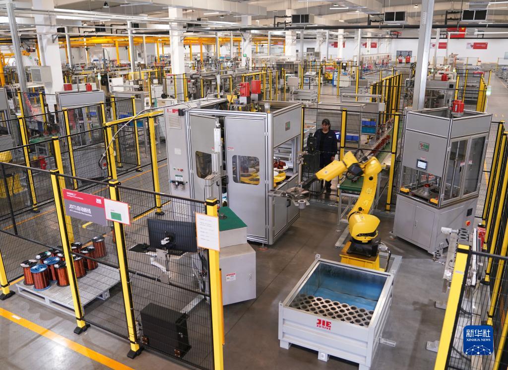 4月27日在浙江杭州市蕭山區拍攝的杰牌智能傳動(dòng)未來(lái)工廠(chǎng)車(chē)間生產(chǎn)內景。