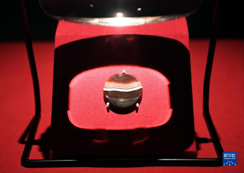 這是曹操高陵遺址博物館內展出的瑪瑙餅(4月27日攝)。