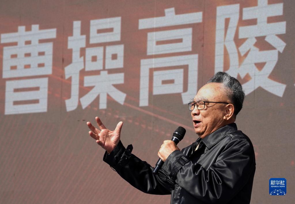 4月27日,演員鮑國安在曹操高陵遺址博物館開(kāi)館儀式上朗誦。