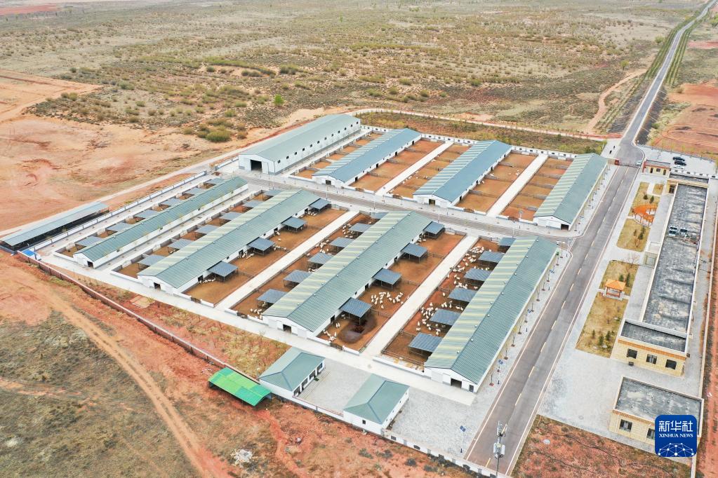 這是4月27日拍攝的伊金霍洛旗蘇布爾嘎鎮敏蓋絨山羊原種繁育中心(無(wú)人機照片)。