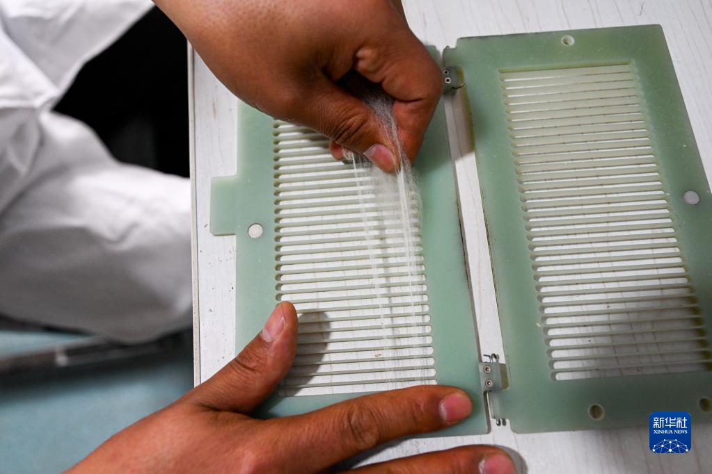 4月27日,在伊金霍洛旗蘇布爾嘎鎮敏蓋絨山羊研究中心,技術(shù)員在進(jìn)行羊絨細度檢測。