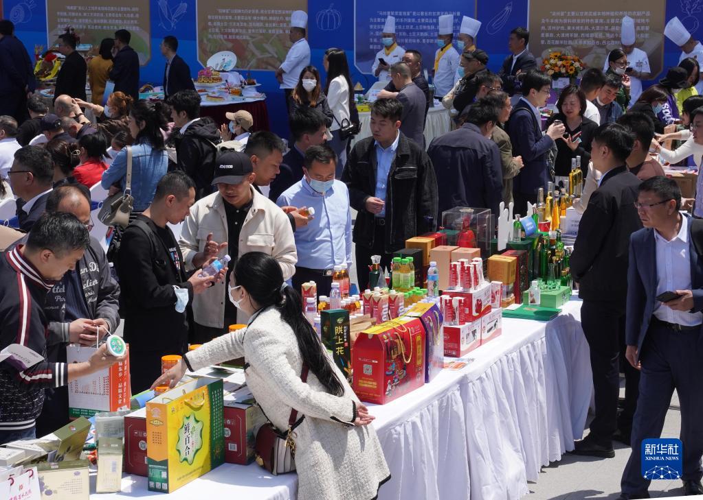4月27日,人們在推介活動(dòng)上了解甘肅特產(chǎn)。