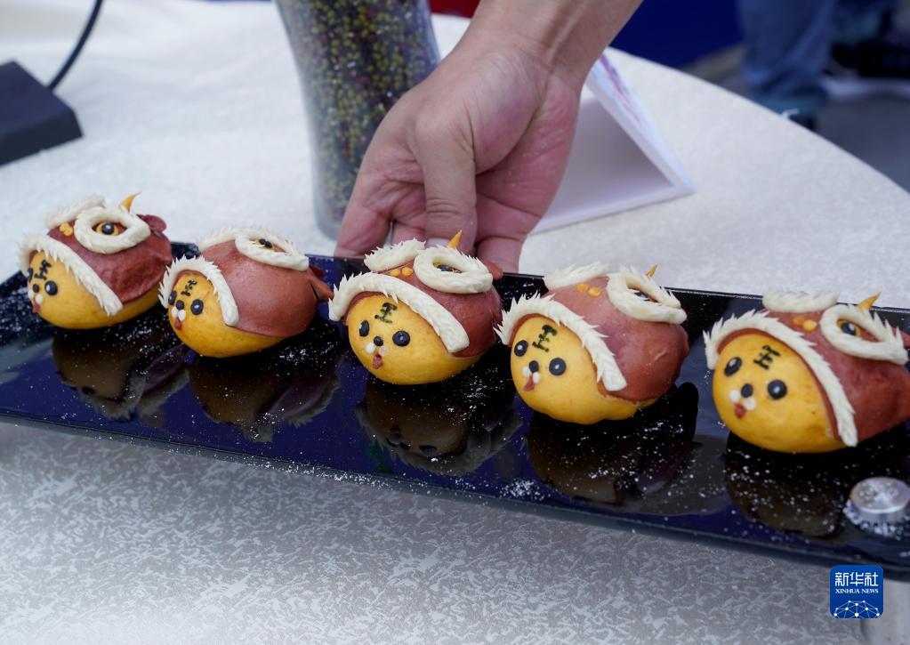 4月27日,來(lái)自甘肅定西的面點(diǎn)師用當地產(chǎn)的土豆制作的虎頭土豆包。