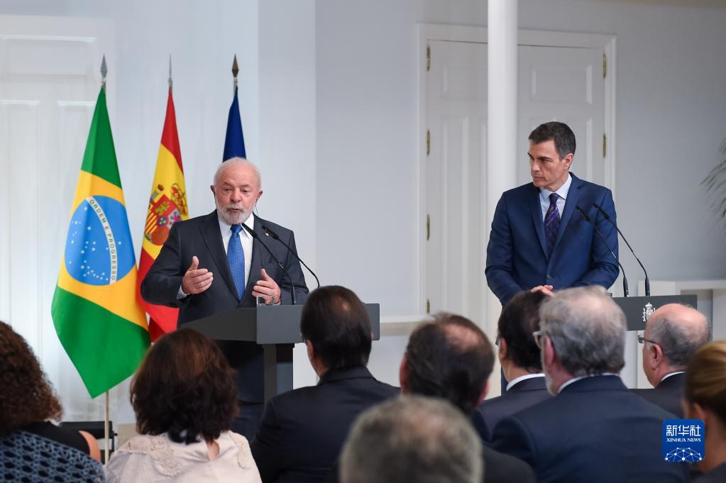 4月26日,巴西總統盧拉(左)和西班牙首相桑切斯在馬德里舉行聯(lián)合記者會(huì )。