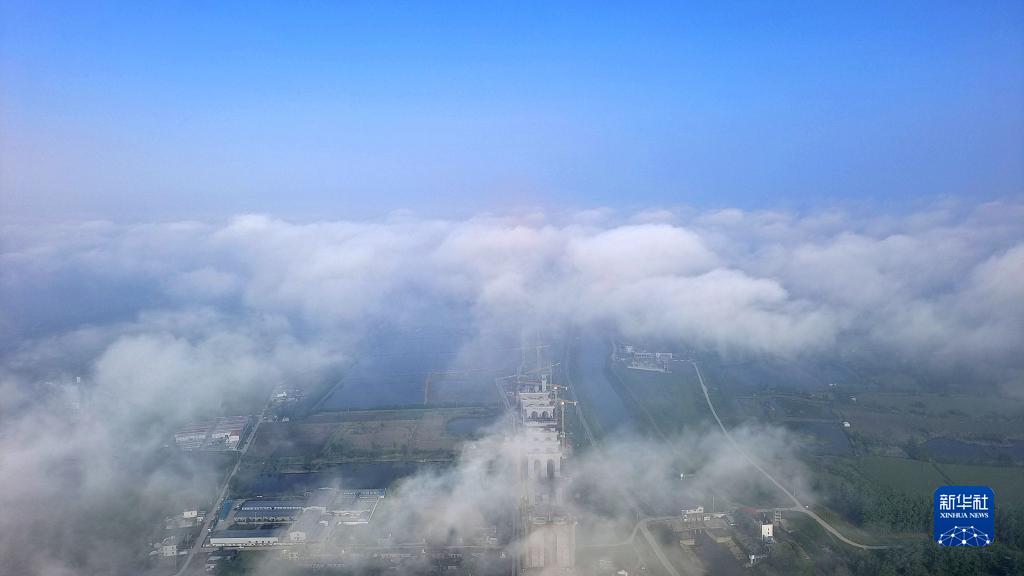 這是劉理4月26日在塔吊上拍攝的馬鞍山公鐵兩用長(cháng)江大橋建設現場(chǎng)。