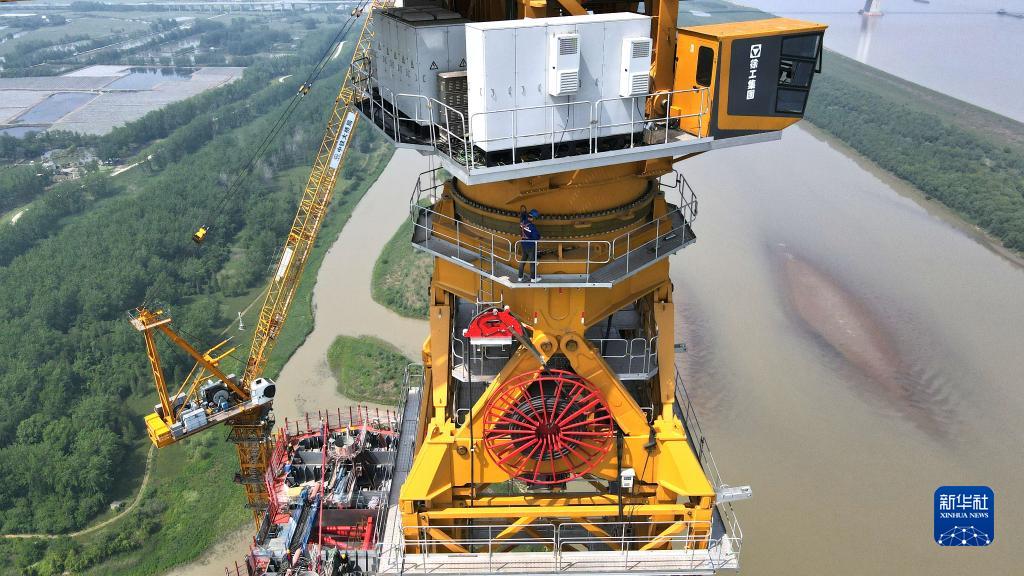 4月26日,劉理在塔吊上進(jìn)行日常維護(無(wú)人機照片)。