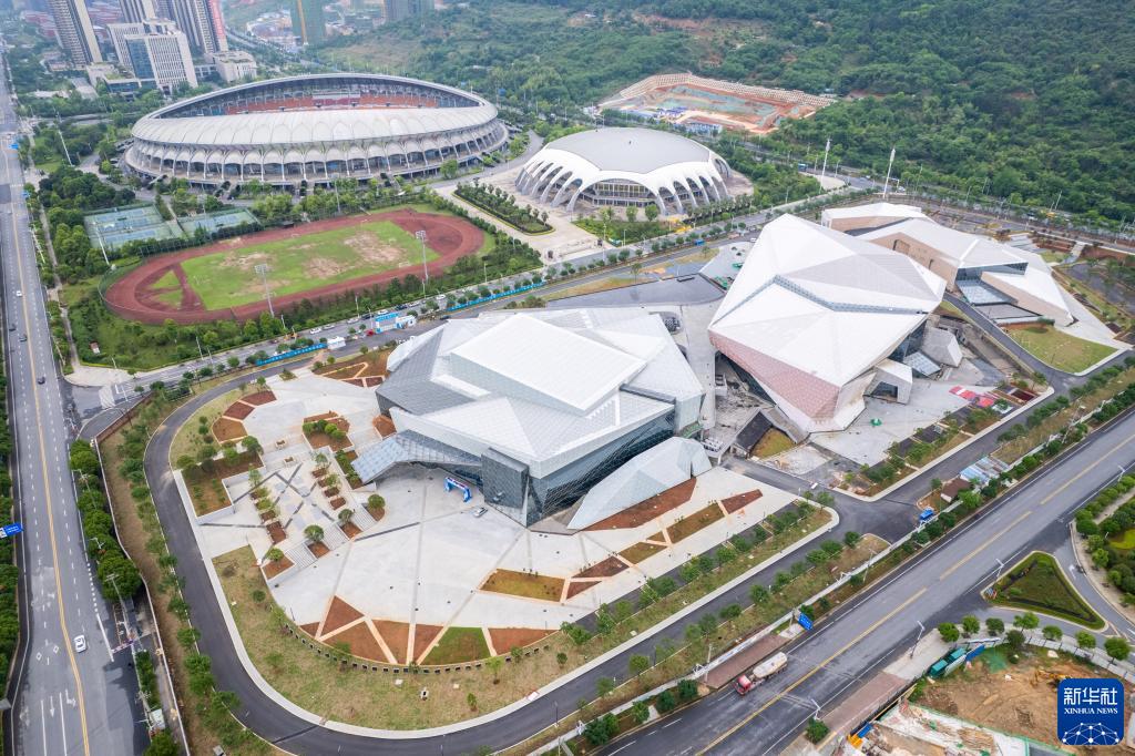 這是4月28日拍攝的建設中的郴州市文體中心(無(wú)人機照片)。