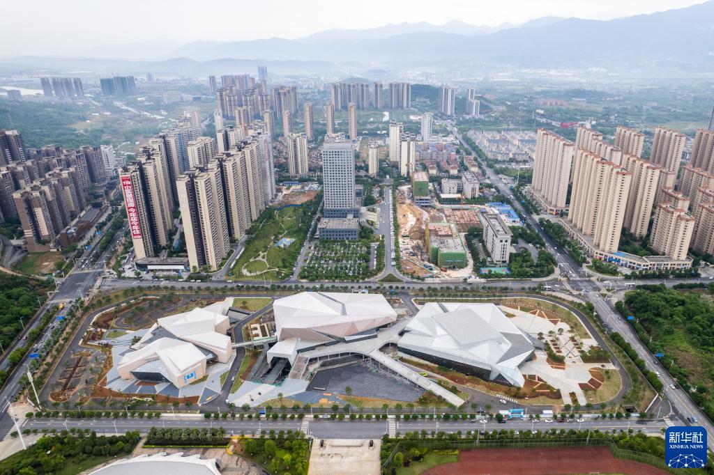 這是4月28日拍攝的建設中的郴州市文體中心(無(wú)人機照片)。