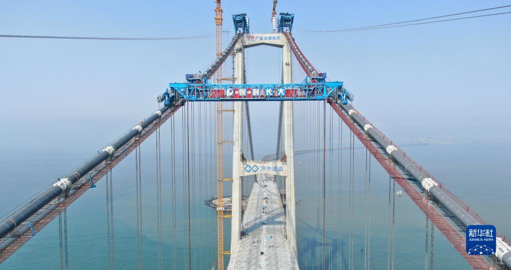 這是4月28日拍攝的深中通道伶仃洋大橋西塔(無(wú)人機照片)。