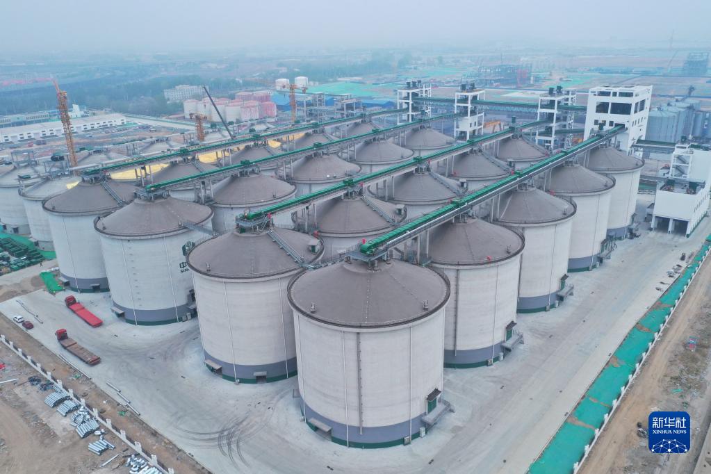 中央儲備糧秦皇島直屬庫有限公司海港糧食儲備基地項目一期(4月28日攝,無(wú)人機照片)。