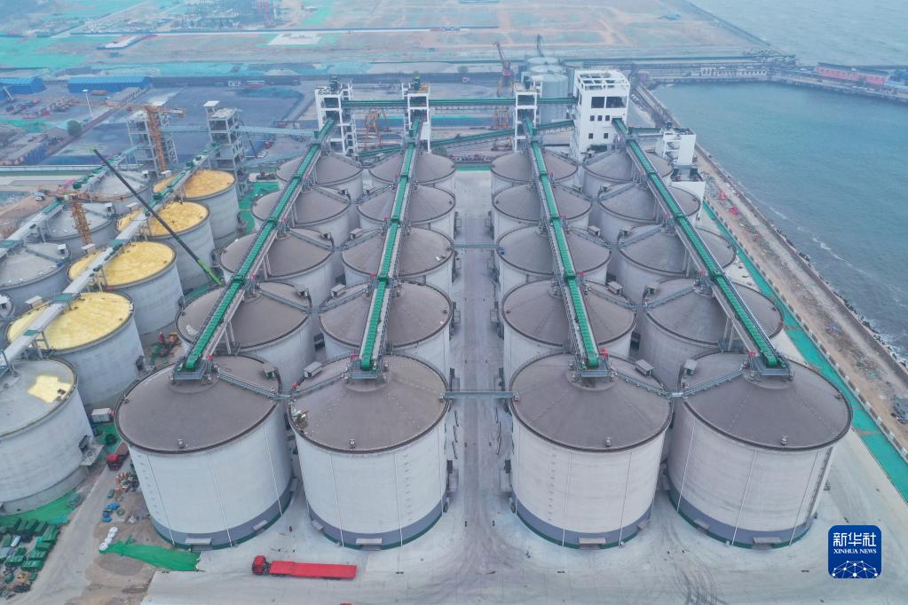 中央儲備糧秦皇島直屬庫有限公司海港糧食儲備基地項目一期(4月28日攝,無(wú)人機照片)。