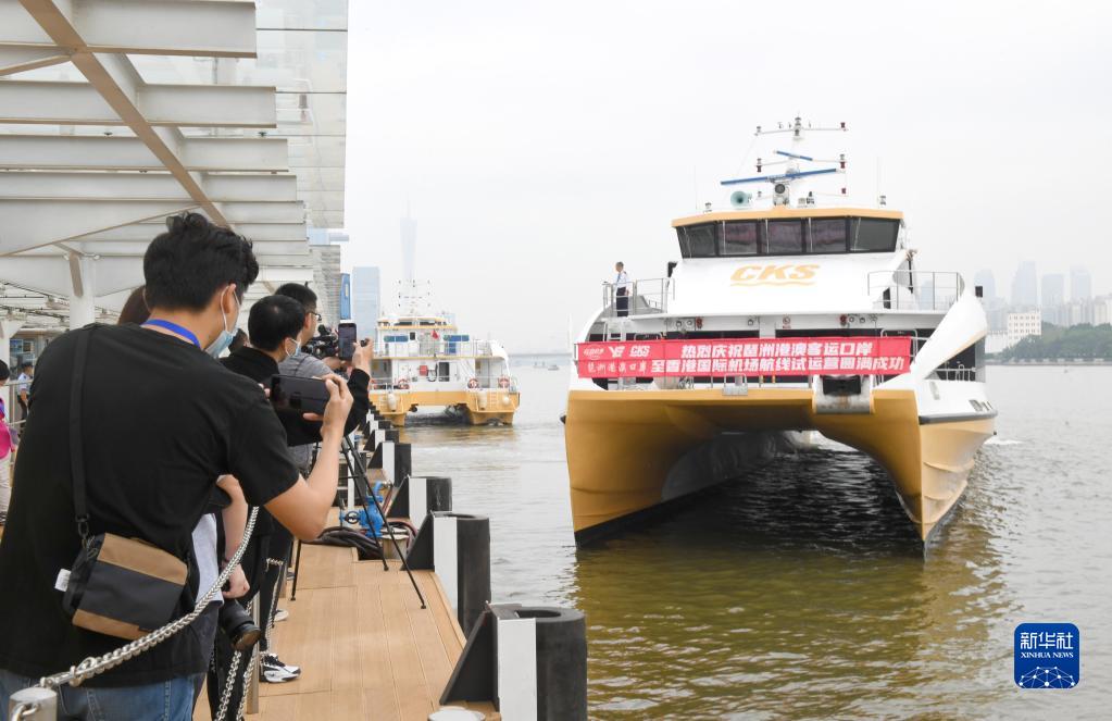 當日起,廣州琶洲港澳客運口岸往返香港國際機場(chǎng)航線(xiàn)試運營(yíng)。旅客從琶洲口岸乘船,可直達香港國際機場(chǎng)(海天碼頭)。試運營(yíng)期間,琶洲口岸往返香港國際機場(chǎng)的航線(xiàn)每天均有一個(gè)班次。其中,琶洲開(kāi)航時(shí)間為9時(shí)45分,預計12時(shí)5分到達香港國際機場(chǎng)(海天碼頭);香港國際機場(chǎng)(海天碼頭)開(kāi)航時(shí)間為14時(shí),預計16時(shí)20分抵達琶洲。