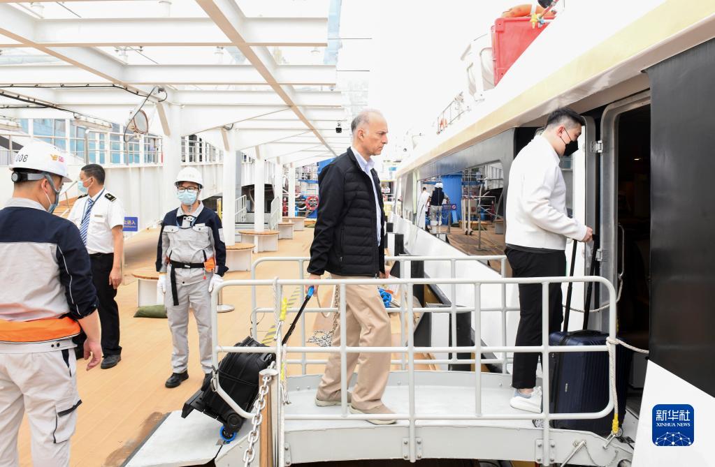 4月28日,旅客在廣州琶洲港澳客運碼頭登船,準備前往香港國際機場(chǎng)。