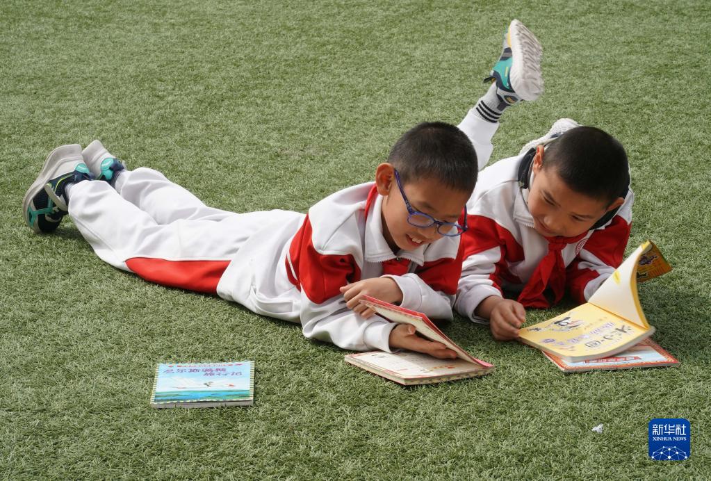 4月28日,在人大附中實(shí)驗小學(xué),學(xué)生在活動(dòng)中閱讀圖書(shū)。