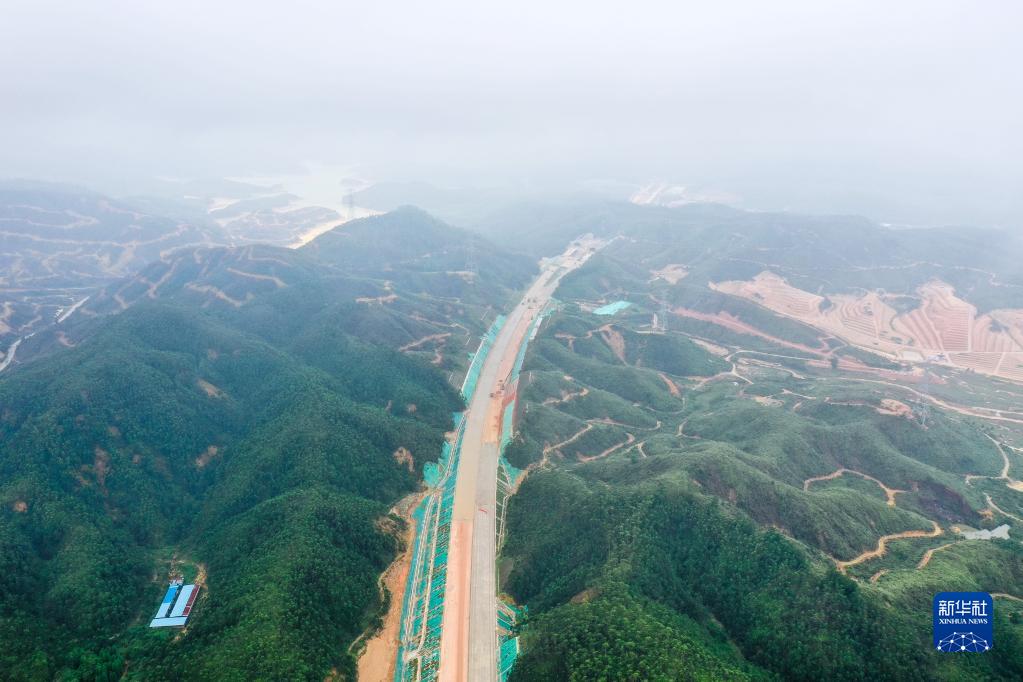 4月28日拍攝的黃茅??绾Mǖ澜T(mén)臺山段赤溪東互通至獅山隧道主線(xiàn)路基已經(jīng)完成施工(無(wú)人機照片)。