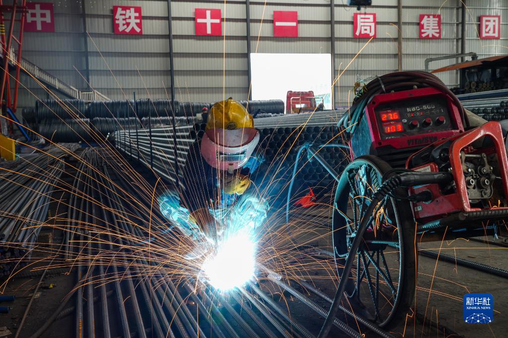 4月28日,工人在黃茅??绾Mǖ乐腔哿簣?chǎng)進(jìn)行焊接作業(yè)。