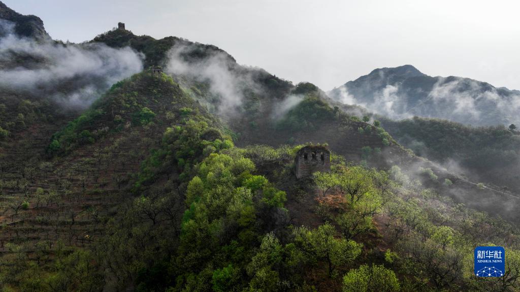 4月28日在河北省遷西縣漢兒莊鎮太陽(yáng)峪村北拍攝的長(cháng)城(無(wú)人機照片)。
