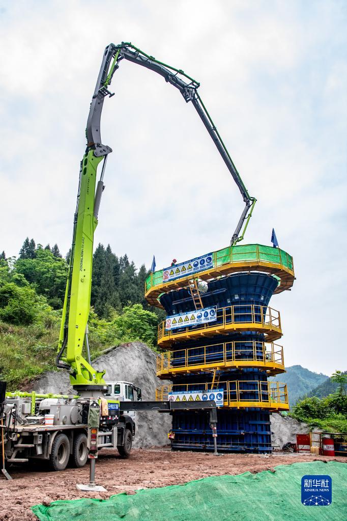 4月28日,在成達萬(wàn)高速鐵路建設現場(chǎng),工程機械在進(jìn)行南河大橋橋墩澆筑作業(yè)。