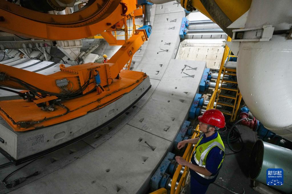 在盾構機推進(jìn)一環(huán)結束后的管片拼裝期間,黃魯在旁站管片拼裝(4月19日攝)。