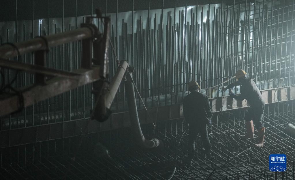 4月29日,中鐵十八局工人在貴陽(yáng)地鐵S1線(xiàn)一期工程錦江路站施工。