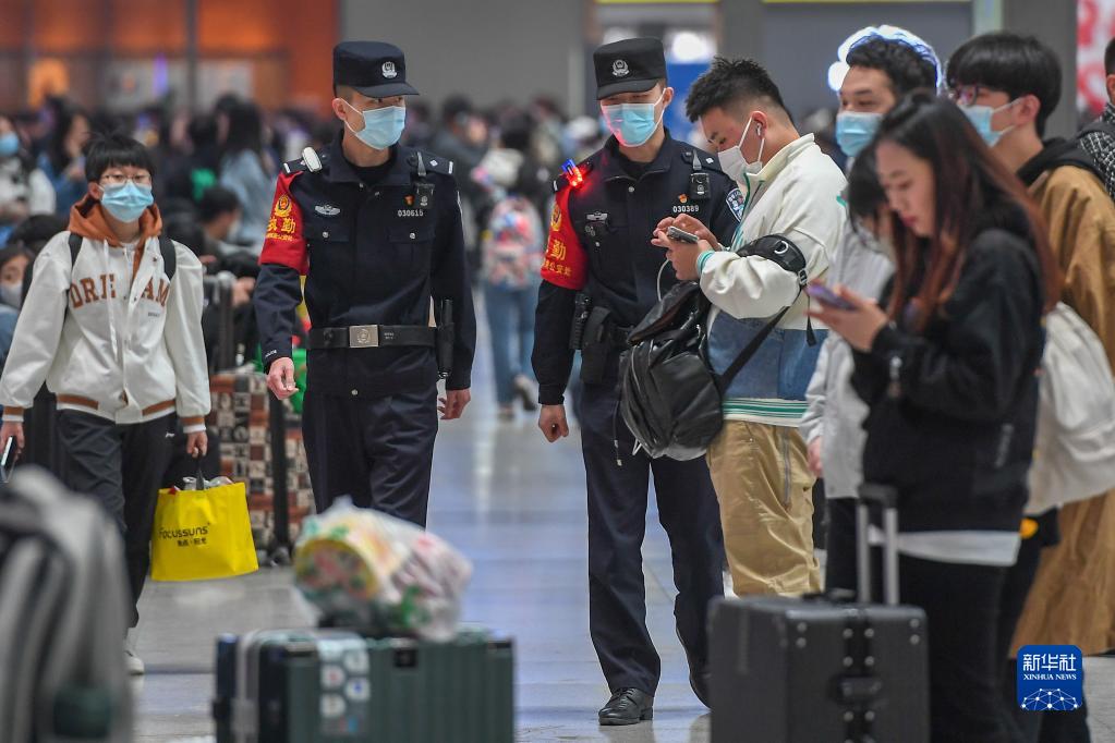 4月29日,長(cháng)春鐵路公安處民警在長(cháng)春站候車(chē)大廳執勤。