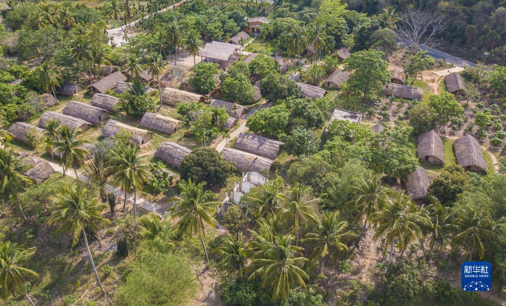 4月28日在海南省東方市白查村拍攝的黎族船型屋(無(wú)人機照片)。