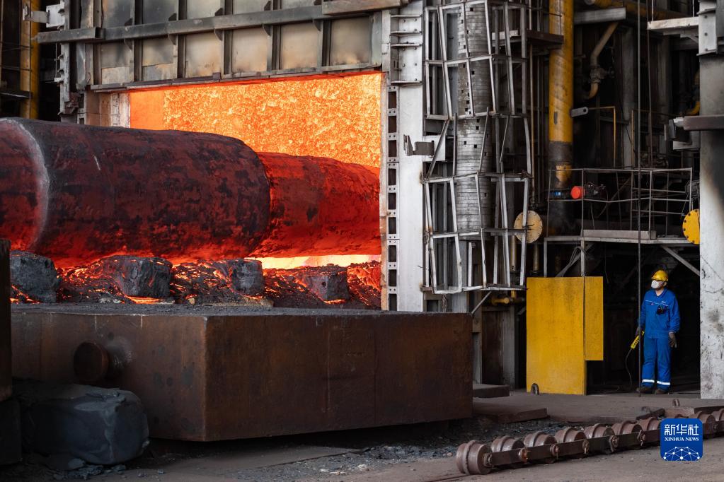 在位于黑龍江省齊齊哈爾市的中國一重集團有限公司生產(chǎn)車(chē)間,工人進(jìn)行生產(chǎn)作業(yè)(4月18日攝)。