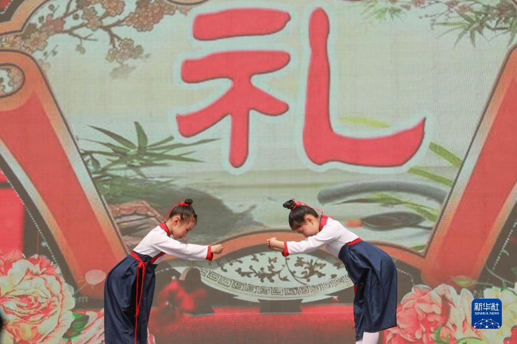 4月29日,漢服愛(ài)好者在葉縣漢服文化節上表演。