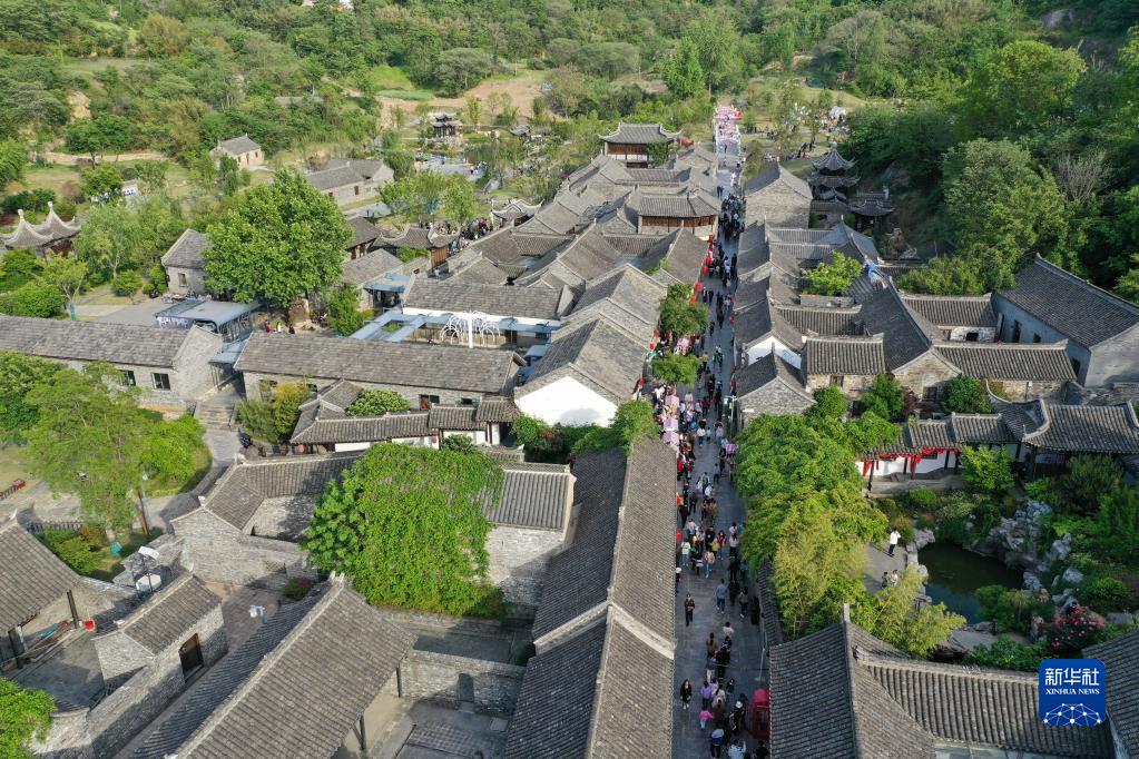 4月29日,市民和游客在盱眙縣第一山歷史文化街區游玩(無(wú)人機照片)。