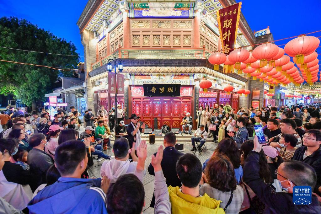 “五一”假期期間,作為“津門(mén)十景”之一的天津古文化街開(kāi)啟了“夜游”模式,繁榮夜間文旅消費。全街百余戶(hù)商家延時(shí)經(jīng)營(yíng),助力城市“夜經(jīng)濟”活力提升。