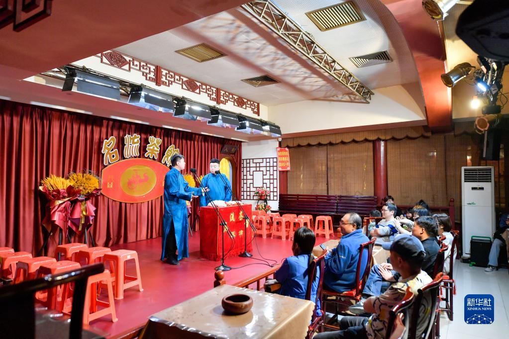 4月29日,游客在天津古文化街一家相聲茶館里聽(tīng)相聲。