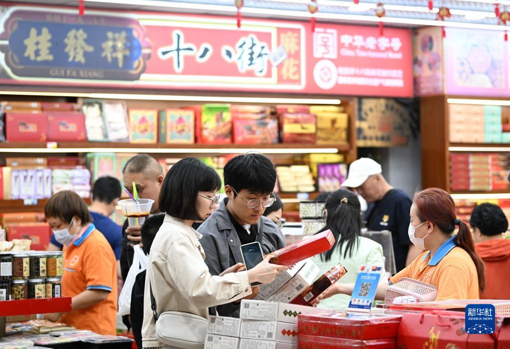 4月29日,游客在天津古文化街一家地方特色商品店選購商品。