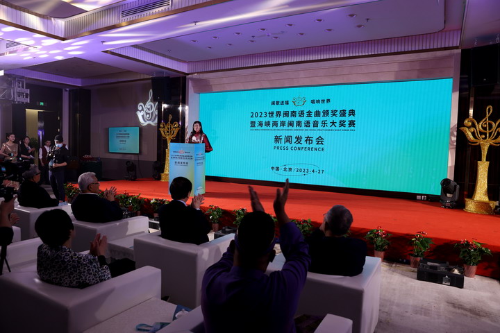 4月27日上午,“2023世界閩南語(yǔ)金曲頒獎盛典暨海峽兩岸閩南語(yǔ)音樂(lè )大獎賽新聞發(fā)布會(huì )”在北京福建大廈福建堂舉辦。此次賽事活動(dòng)旨在搭建立足閩臺,輻射全球的平臺,樹(shù)立閩南語(yǔ)音樂(lè )文化標桿品牌,以“僑”架橋,共享機遇,以歌傳情,融匯兩岸。