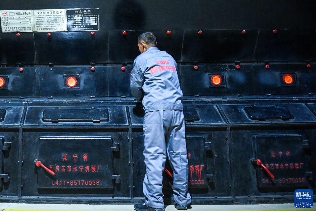 吉林省長(cháng)春國信供熱集團紅旗分公司熱源廠(chǎng)工人在查看鍋爐運行狀況(2022年10月19日攝)。