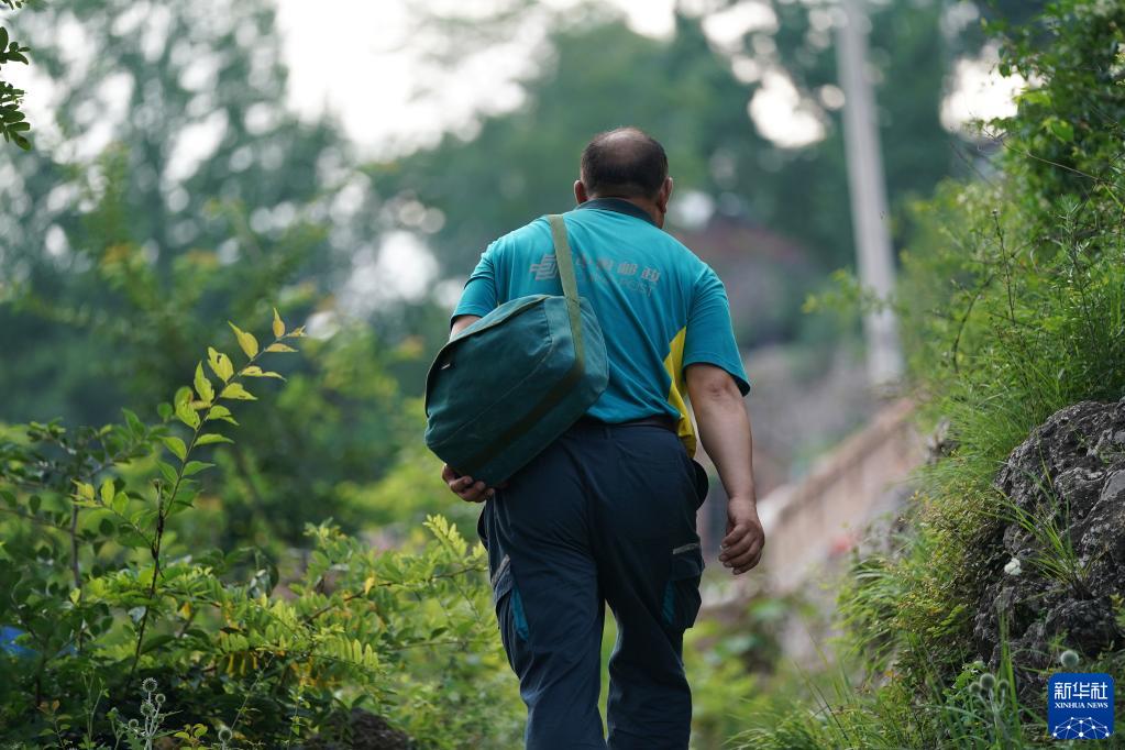 在山西省長(cháng)治市壺關(guān)縣大峽谷鎮,郵遞員趙月芳走在送件的小路上(2022年7月14日攝)。