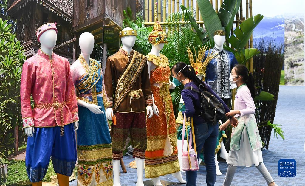 4月30日,觀(guān)眾在2023海南錦繡世界文化周非物質(zhì)文化遺產(chǎn)傳統織繡印染技藝項目精品展上參觀(guān)展出的東盟國家織錦精品。
