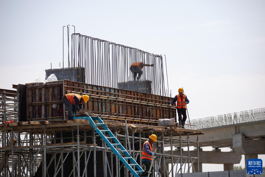 4月30日,在山東省東青高速公路改擴建工程廣饒段新建廣饒互通施工現場(chǎng),工人們在現場(chǎng)忙碌。