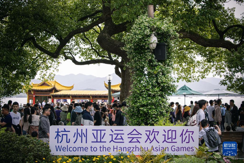 4月30日,游客在杭州西湖景區游覽。