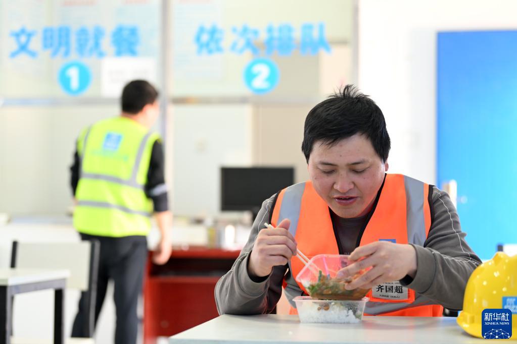 齊國超在項目部食堂吃飯(4月26日攝)。