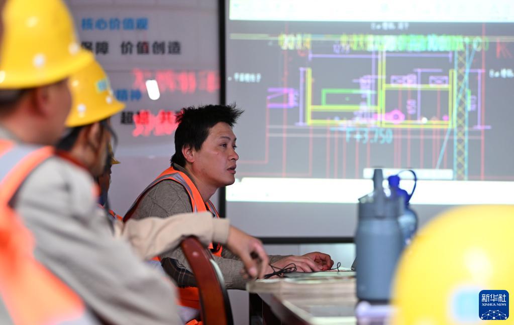 齊國超(右)在工地會(huì )議室內進(jìn)行技術(shù)交底(4月29日攝)。