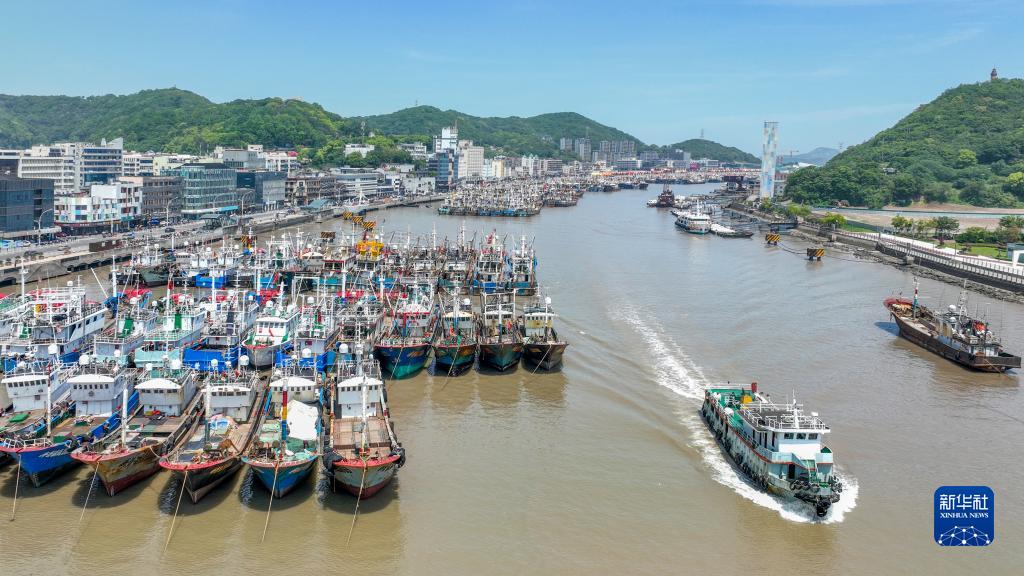 4月30日,在浙江省舟山市普陀區沈家門(mén)漁港,漁船歸港準備休漁(無(wú)人機照片)。