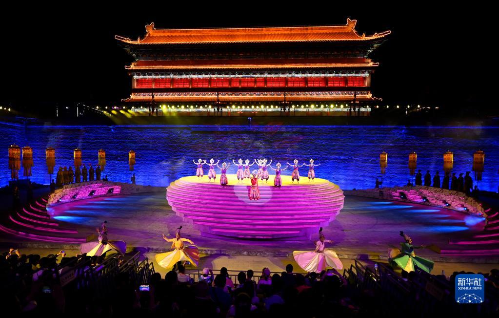 4月30日,游客在西安城墻景區觀(guān)看《夢(mèng)長(cháng)安——大唐迎賓盛禮》。