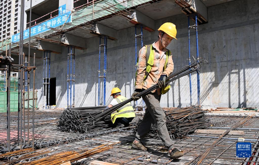 5月1日,工人在中建二局陜西分公司高鐵新城項目工地施工。