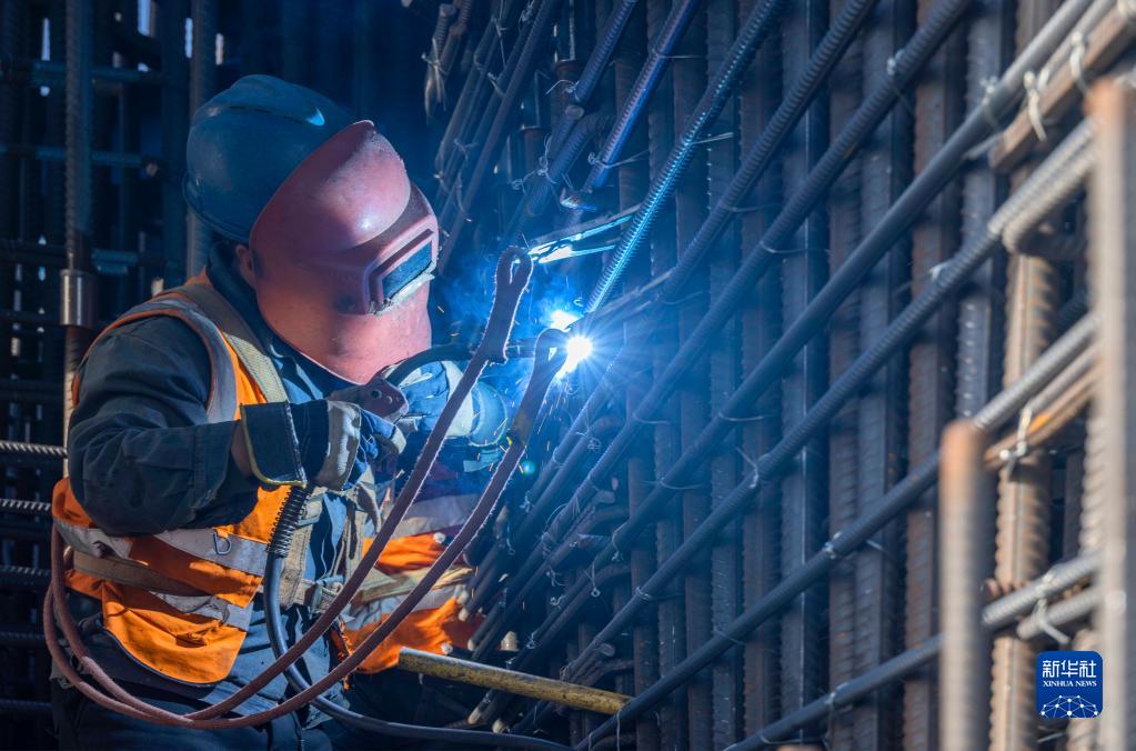 5月1日,中交二航局工人在江蘇常泰長(cháng)江大橋5號墩主塔進(jìn)行焊接作業(yè)。