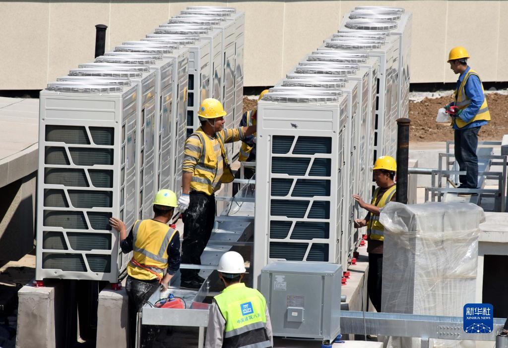 5月1日,中建八局四公司的工人在山東省青島市高新區康復大學(xué)項目工地施工。
