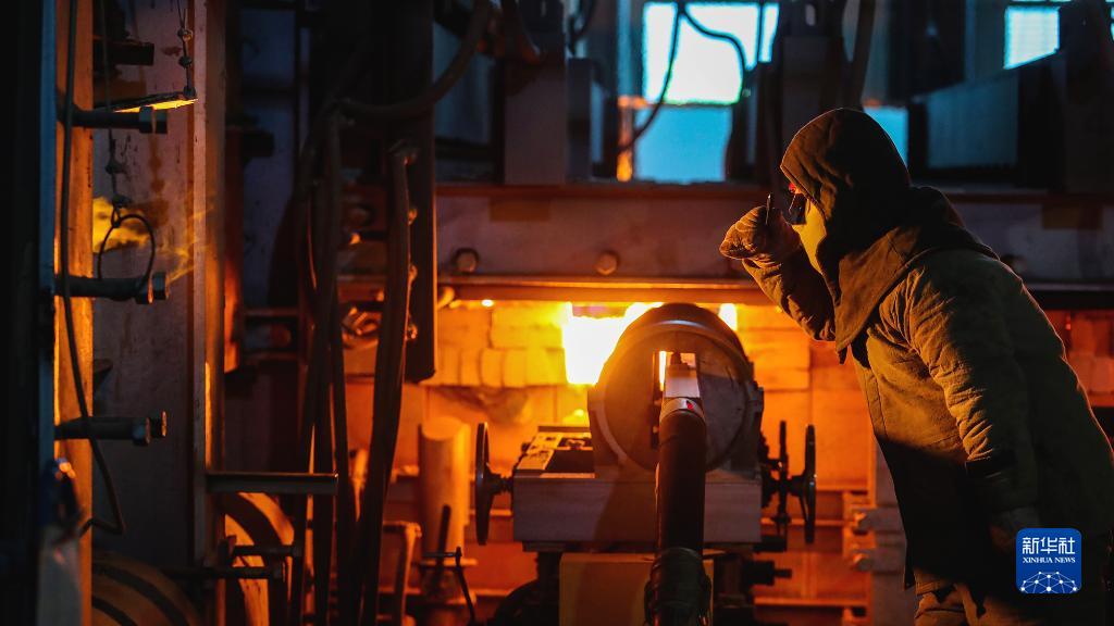 5月1日,在河南省商丘市睢陽(yáng)區一家玻璃生產(chǎn)企業(yè),工人在車(chē)間觀(guān)察玻璃液熔制情況。